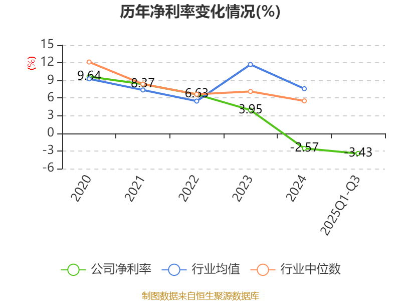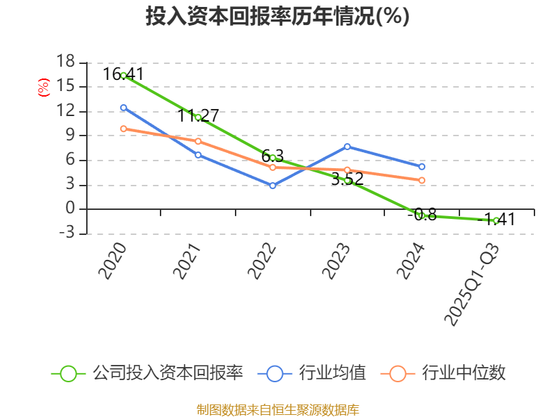 盈利能力方面, 2025年前三季度公司加权平均净资产收益率为-3.25%,同比下降3.48个百分点。公司2025年前三季度投入资本回报率为-1.41%,较上年同期下降1.49个百分点。