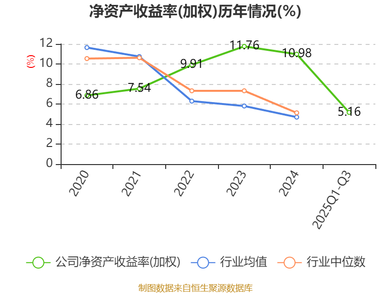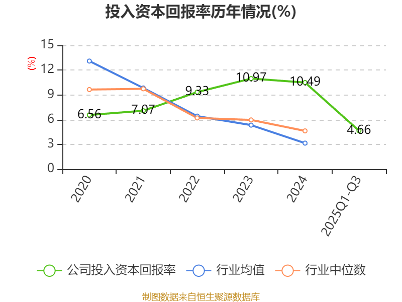 盈利能力方面, 2025年前三季度公司加权平均净资产收益率为5.16%,同比下降0.62个百分点。公司2025年前三季度投入资本回报率为4.66%,较上年同期下降0.55个百分点。