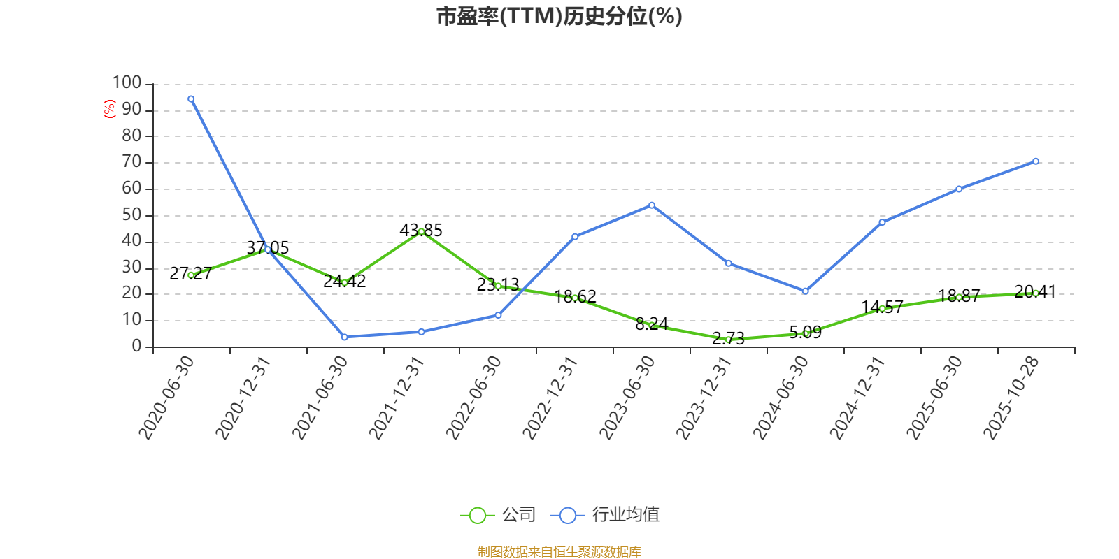 市盈率、市净率为负时,不显示当期分位数,会导致折线图中断。