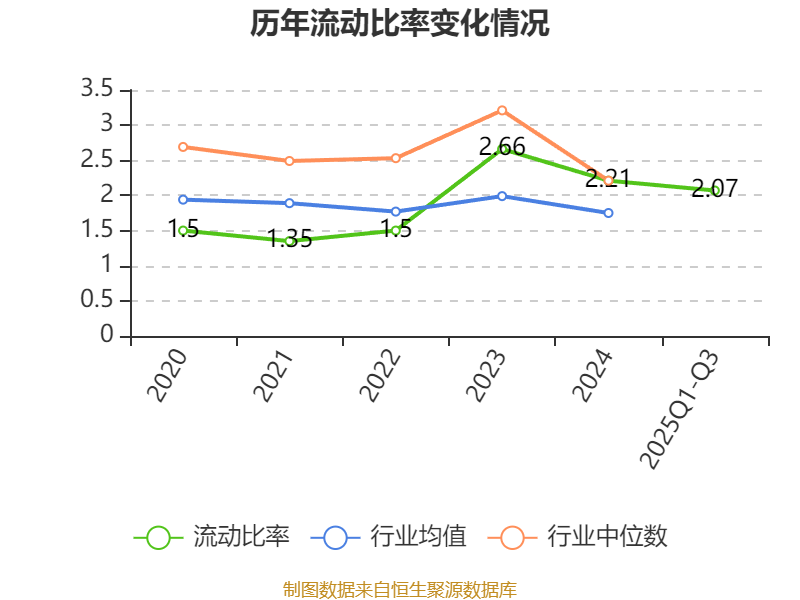 2025年前三季度,公司流动比率为2.07,速动比率为1.66。