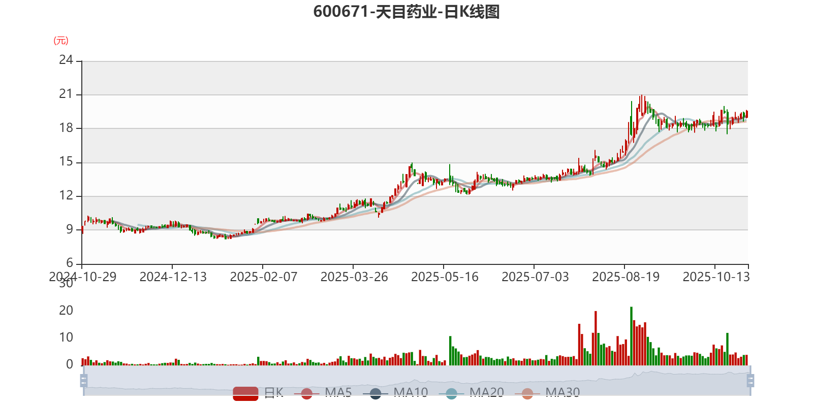以10月28日收盘价计算,天目药业目前市盈率(TTM)约为71.78倍,市净率(LF)约35.73倍,市销率(TTM)约9.46倍。