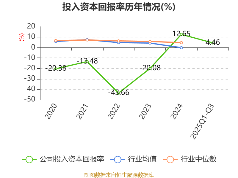 盈利能力方面, 2025年前三季度公司加权平均净资产收益率为23.89%,同比上升34.36个百分点。公司2025年前三季度投入资本回报率为4.46%,较上年同期上升3.68个百分点。