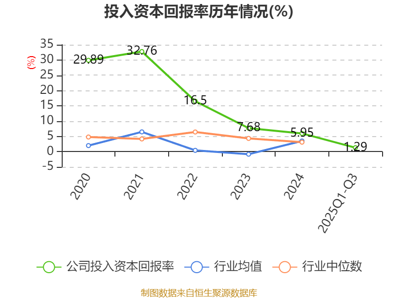 盈利能力方面, 2025年前三季度公司加权平均净资产收益率为2.7%,同比下降3.36个百分点。公司2025年前三季度投入资本回报率为1.29%,较上年同期下降4.05个百分点。