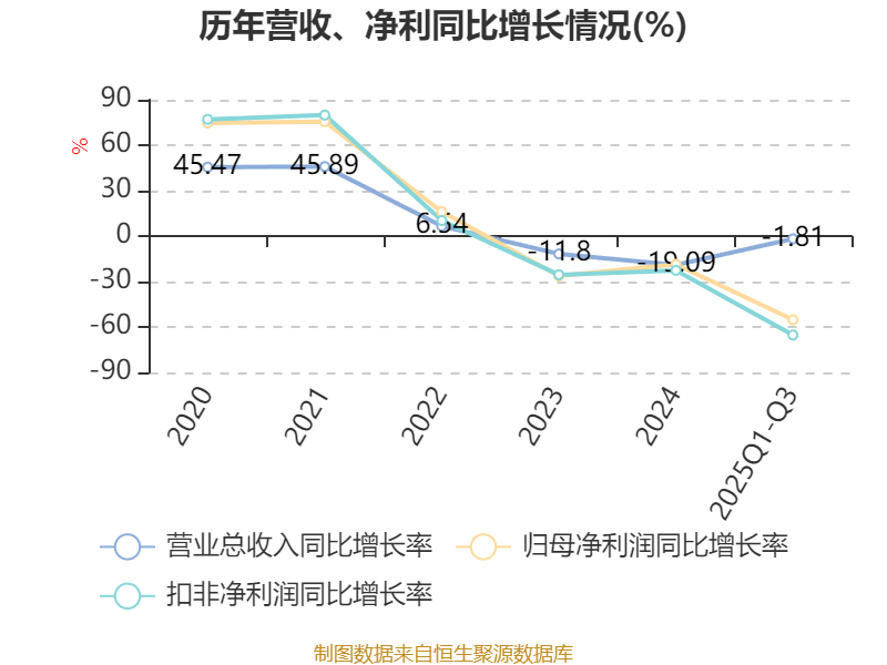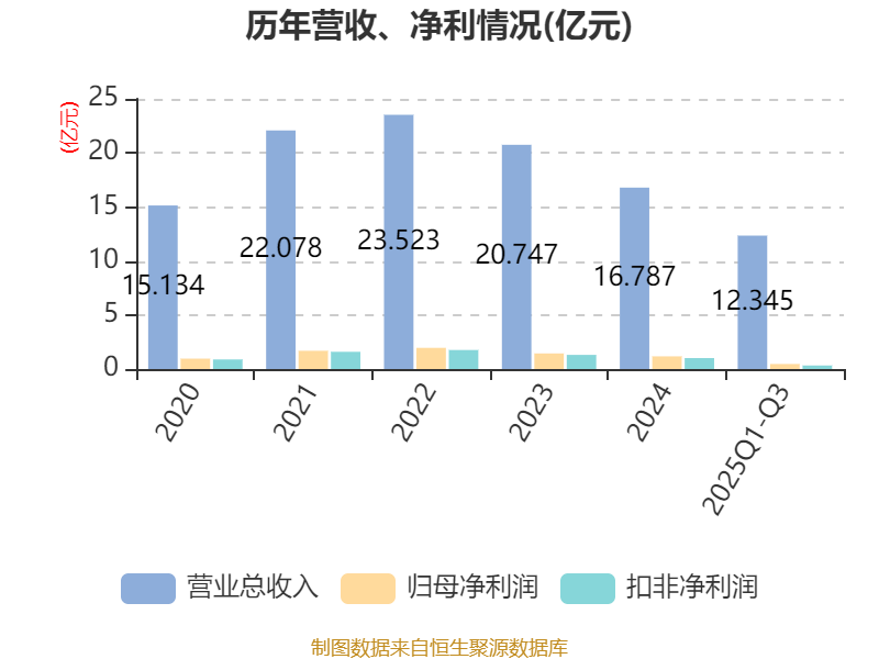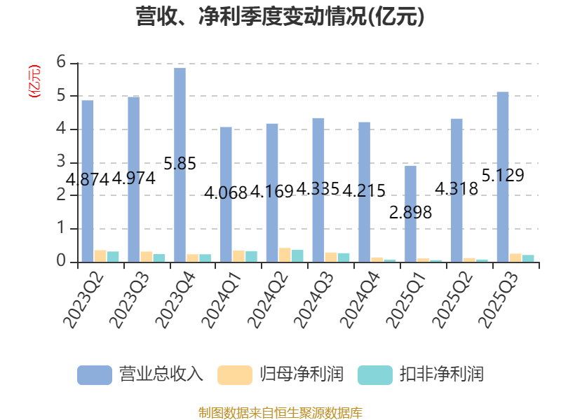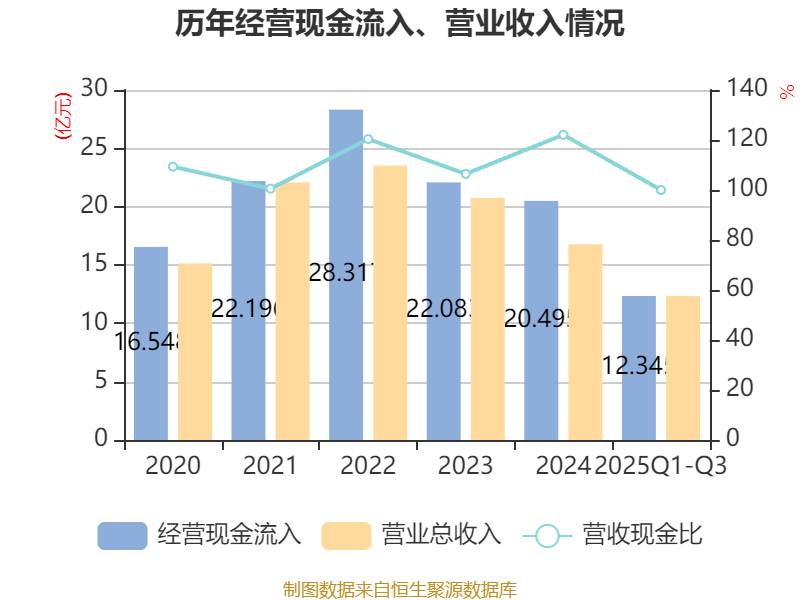 2025年前三季度,公司经营活动现金流净额为1.23亿元,同比下降34.56%;筹资活动现金流净额-1.32亿元,同比减少2585.58万元;投资活动现金流净额-4.41亿元,上年同期为-2.89亿元。