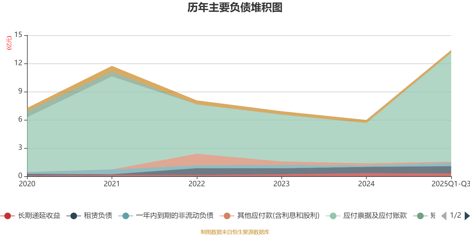 负债重大变化方面,截至2025年三季度末,公司应付票据及应付账款较上年末增加169.54%,占公司总资产比重上升20.01个百分点;其他应付款(含利息和股利)较上年末减少54.75%,占公司总资产比重下降0.66个百分点;一年内到期的非流动负债较上年末增加160.61%,占公司总资产比重上升0.64个百分点;长期递延收益较上年末减少12.53%,占公司总资产比重下降0.46个百分点。
