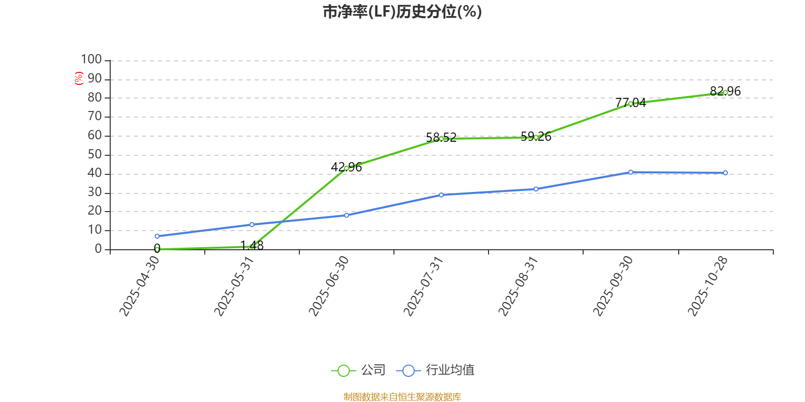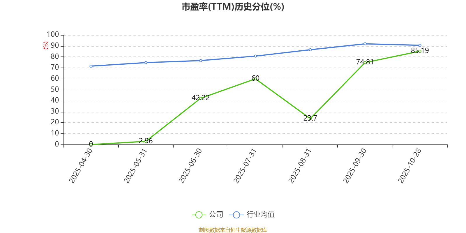 市盈率、市净率为负时,不显示当期分位数,会导致折线图中断。