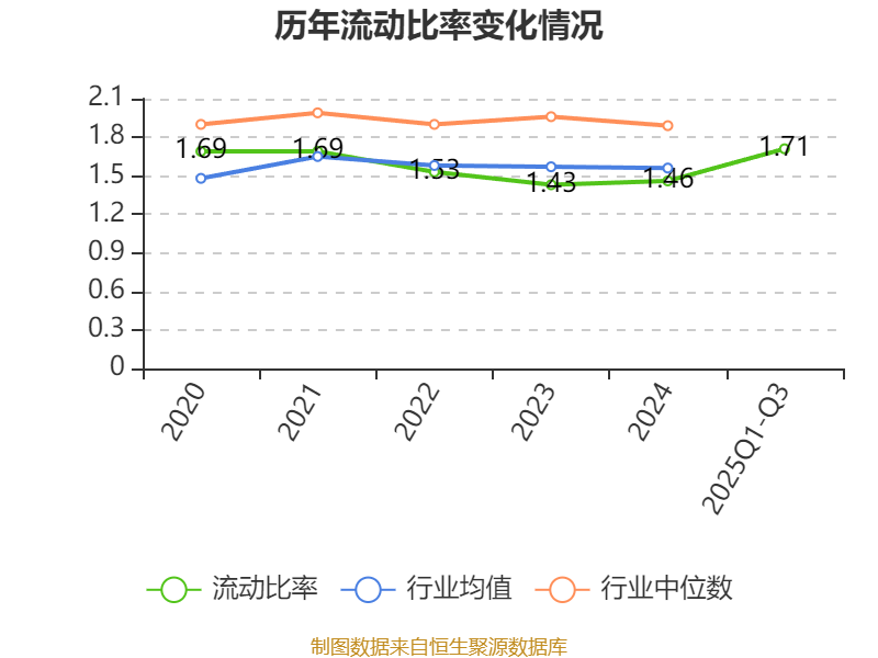 2025年前三季度,公司流动比率为1.71,速动比率为1.34。