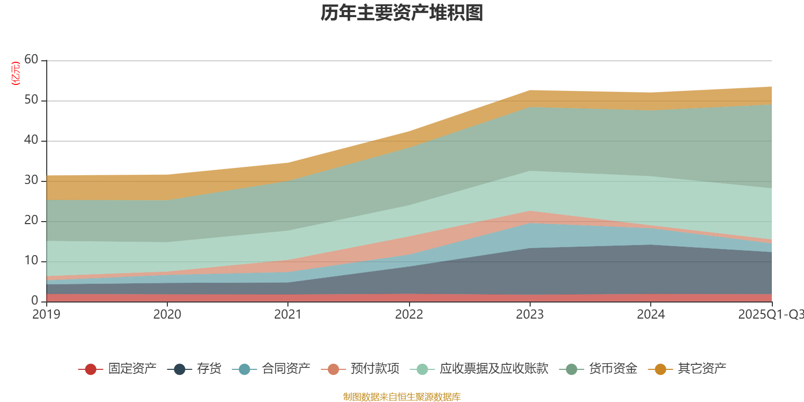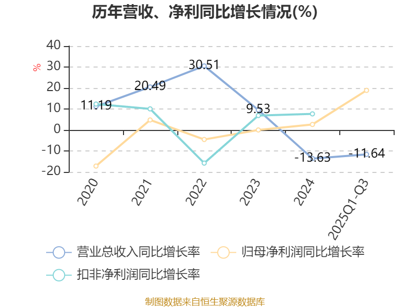 资产重大变化方面,截至2025年三季度末,公司货币资金较上年末增加27.19%,占公司总资产比重上升7.46个百分点;存货较上年末减少14.37%,占公司总资产比重下降3.94个百分点;合同资产较上年末减少47.52%,占公司总资产比重下降3.87个百分点;应收款项融资较上年末减少57.05%,占公司总资产比重下降0.65个百分点。
