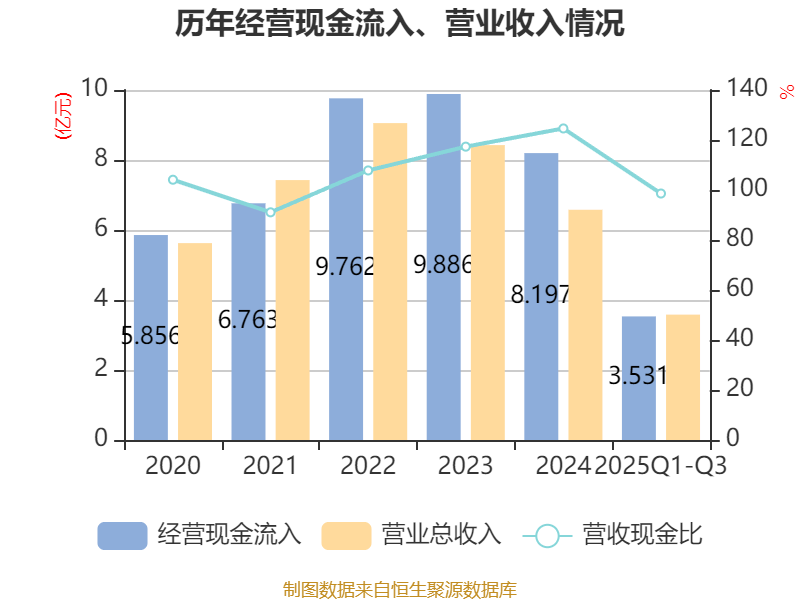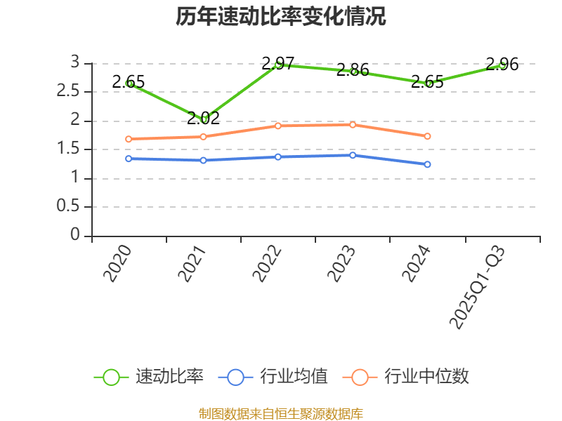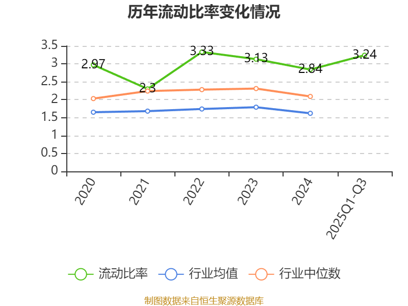 2025年前三季度,公司流动比率为3.24,速动比率为2.96。