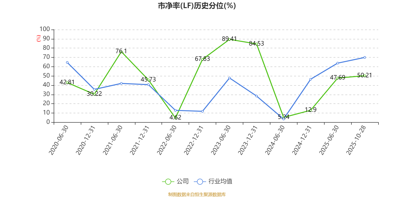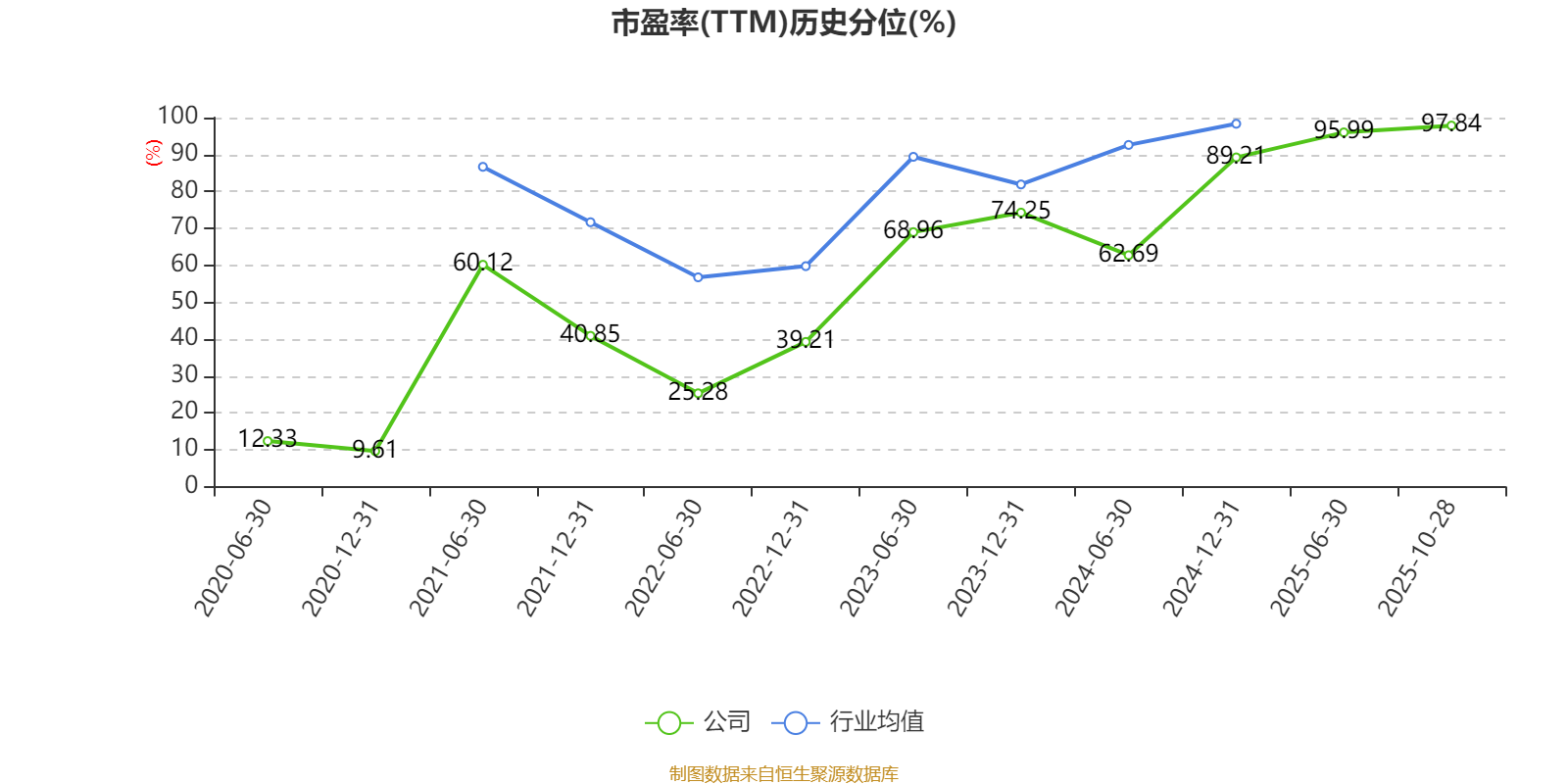市盈率、市净率为负时,不显示当期分位数,会导致折线图中断。