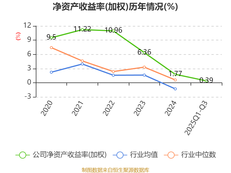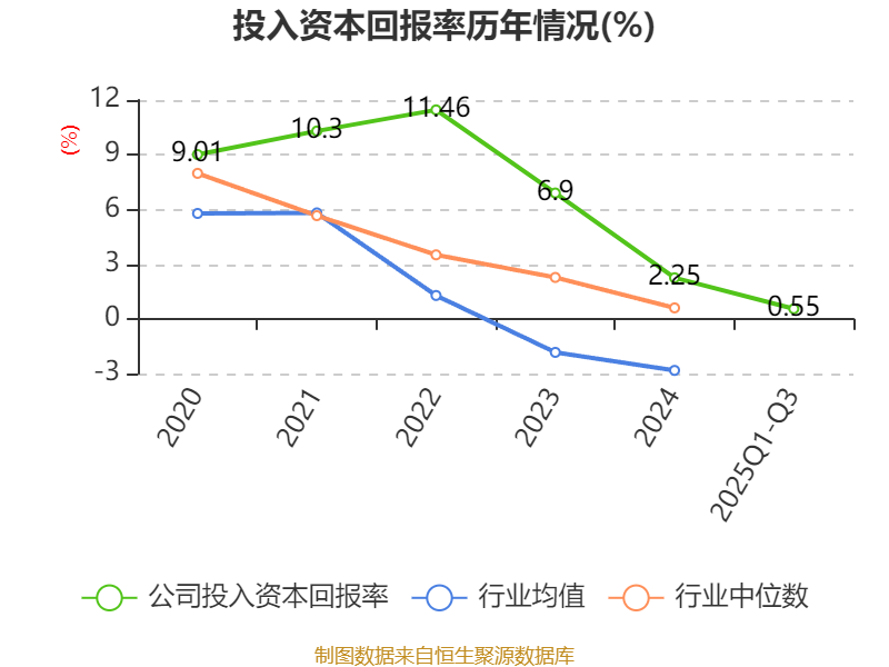 盈利能力方面, 2025年前三季度公司加权平均净资产收益率为0.39%,同比下降0.39个百分点。公司2025年前三季度投入资本回报率为0.55%,较上年同期下降0.4个百分点。