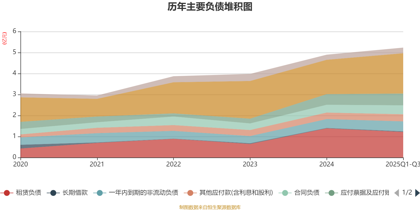负债重大变化方面,截至2025年三季度末,公司租赁负债较上年末减少12.38%,占公司总资产比重下降2.03个百分点;短期借款较上年末增加17.42%,占公司总资产比重上升1.79个百分点;合同负债较上年末增加14.73%,占公司总资产比重上升0.32个百分点;一年内到期的非流动负债较上年末增加11.9%,占公司总资产比重上升0.26个百分点。