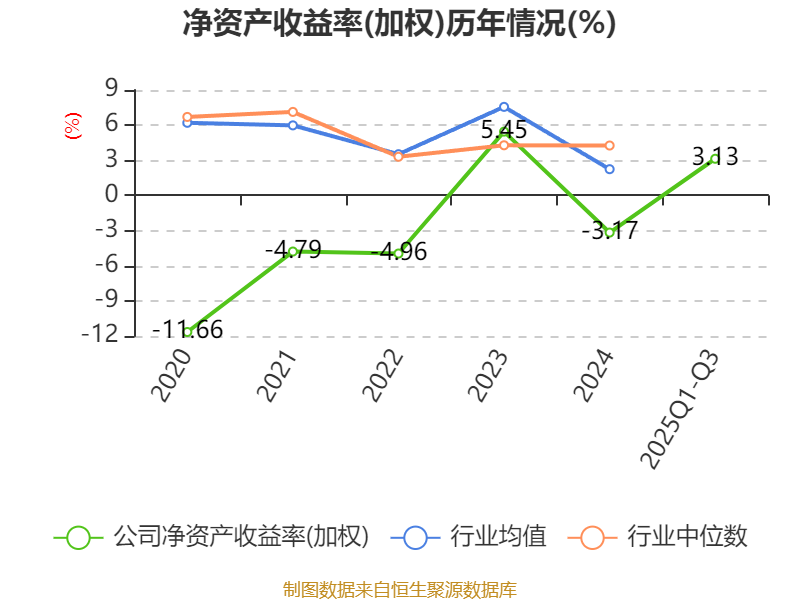 盈利能力方面, 2025年前三季度公司加权平均净资产收益率为3.13%,同比上升1.89个百分点。公司2025年前三季度投入资本回报率为2.52%,较上年同期上升2.21个百分点。
