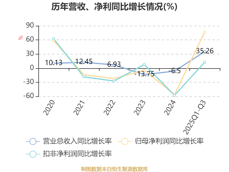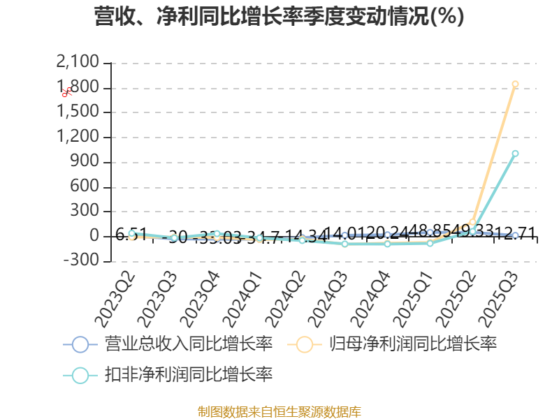 资产重大变化方面,截至2025年三季度末,公司货币资金较上年末减少55.86%,占公司总资产比重下降7.38个百分点;应收票据及应收账款较上年末增加55.89%,占公司总资产比重上升5.09个百分点;交易性金融资产合计较上年末增加38.86%,占公司总资产比重上升2.44个百分点;其他非流动资产较上年末增加79.83%,占公司总资产比重上升2.19个百分点。