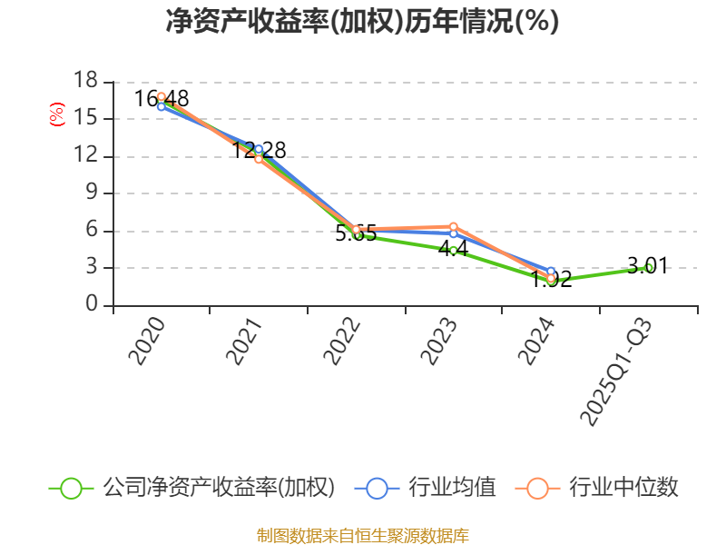 盈利能力方面, 2025年前三季度公司加权平均净资产收益率为3.01%,同比上升1.29个百分点。公司2025年前三季度投入资本回报率为2.77%,较上年同期上升1.37个百分点。