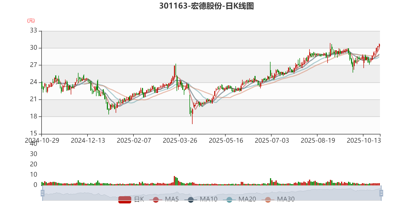 以10月28日收盘价计算,宏德股份目前市盈率(TTM)约为69.37倍,市净率(LF)约2.2倍,市销率(TTM)约3.05倍。