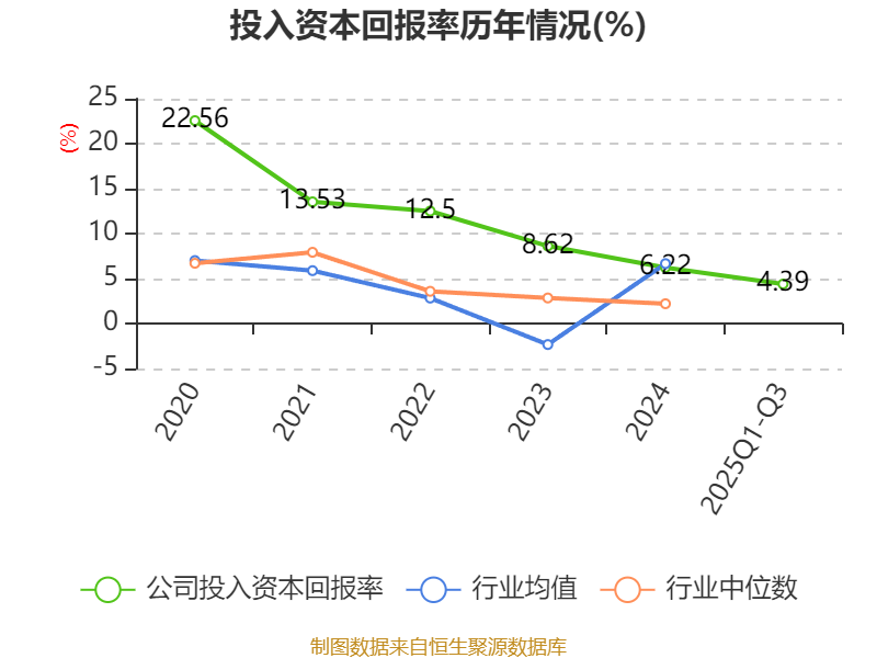 盈利能力方面, 2025年前三季度公司加权平均净资产收益率为4.62%,同比下降0.79个百分点。公司2025年前三季度投入资本回报率为4.39%,较上年同期下降0.62个百分点。