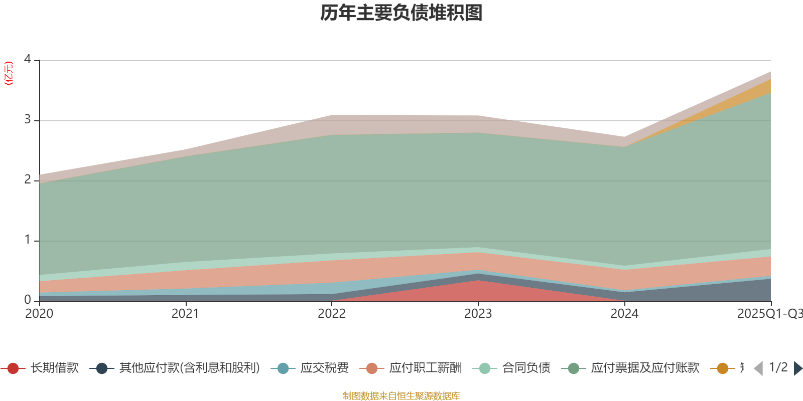 负债重大变化方面,截至2025年三季度末,公司应付票据及应付账款较上年末增加31.74%,占公司总资产比重上升2.65个百分点;短期借款占公司总资产的1.27%,上年末为0;其他应付款(含利息和股利)较上年末增加161.72%,占公司总资产比重上升1.2个百分点;一年内到期的非流动负债较上年末减少80.04%,占公司总资产比重下降0.36个百分点。