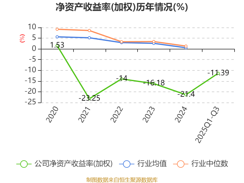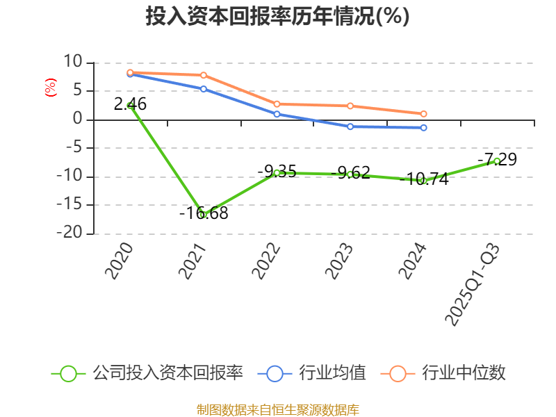 盈利能力方面, 2025年前三季度公司加权平均净资产收益率为-11.39%,同比下降1.51个百分点。公司2025年前三季度投入资本回报率为-7.29%,较上年同期下降1.69个百分点。
