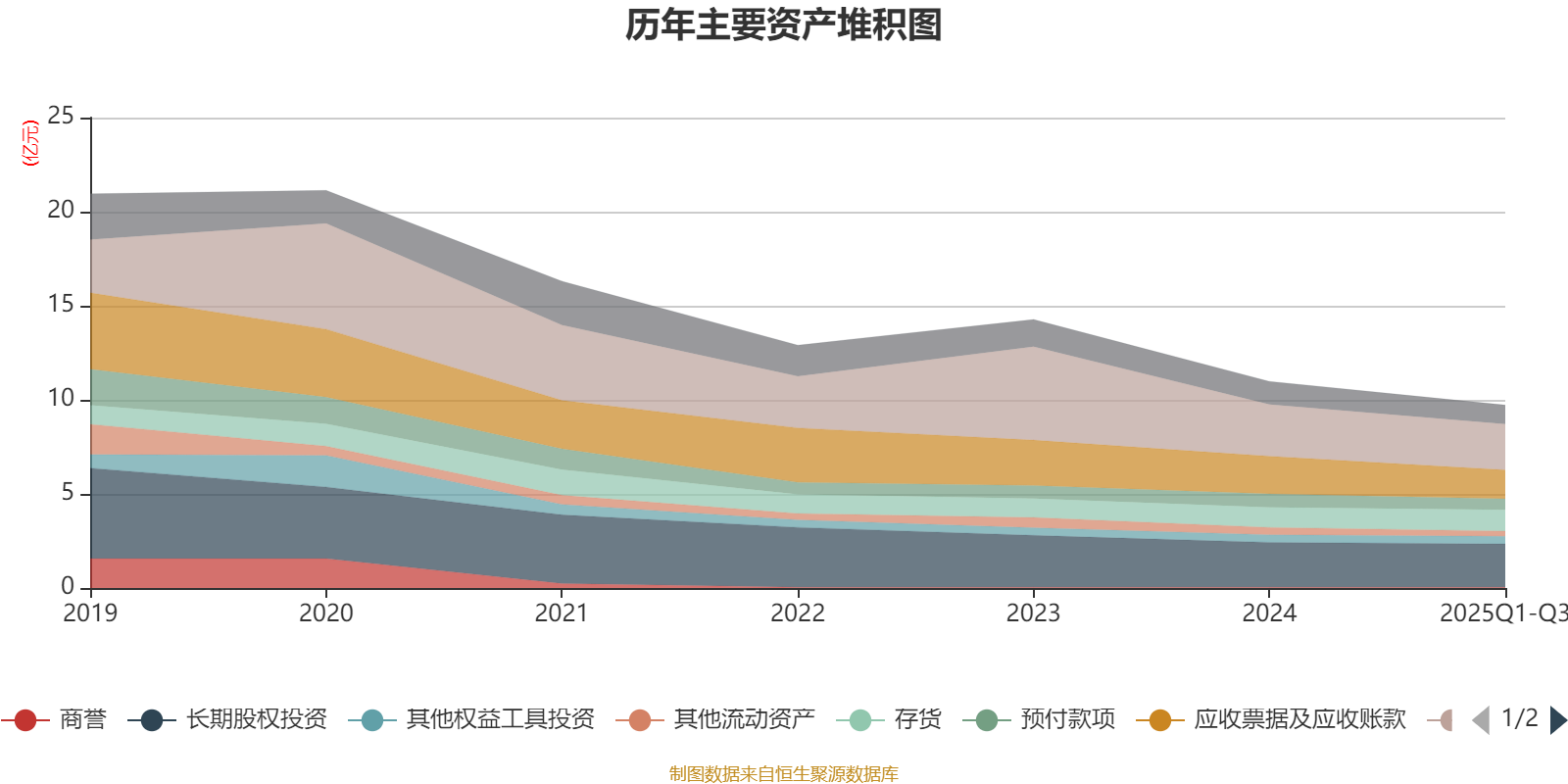 资产重大变化方面,截至2025年三季度末,公司应收票据及应收账款较上年末减少23.75%,占公司总资产比重下降2.54个百分点;长期股权投资较上年末减少3.49%,占公司总资产比重上升1.95个百分点;存货较上年末增加6.07%,占公司总资产比重上升1.93个百分点;无形资产较上年末减少26.13%,占公司总资产比重下降0.7个百分点。