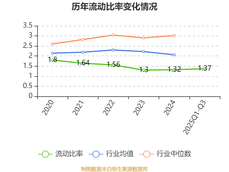 2025年前三季度,公司流动比率为1.37,速动比率为1.12。
