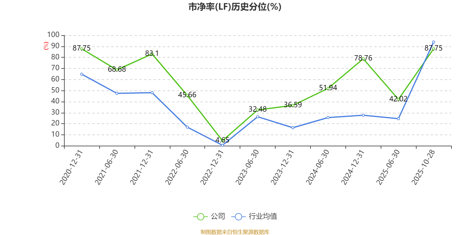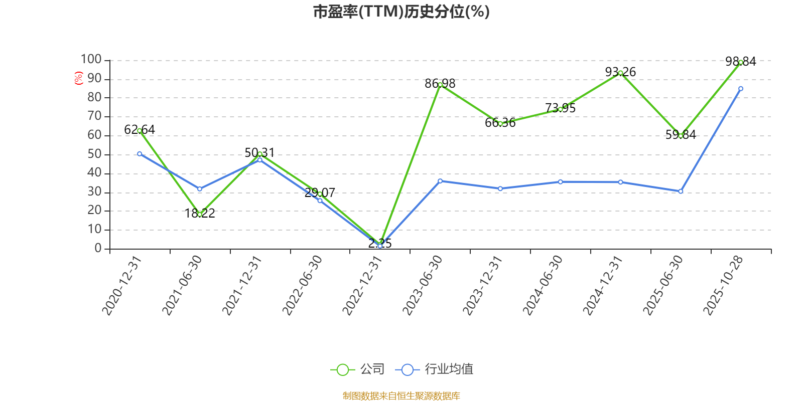 市盈率、市净率为负时,不显示当期分位数,会导致折线图中断。