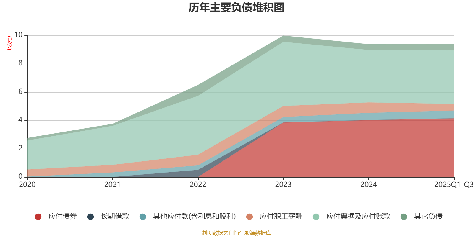 负债重大变化方面,截至2025年三季度末,公司应付职工薪酬较上年末减少37.56%,占公司总资产比重下降1.1个百分点;应付债券较上年末增加3.07%,占公司总资产比重上升0.45个百分点;应付票据及应付账款较上年末增加2.32%,占公司总资产比重上升0.3个百分点;其他应付款(含利息和股利)较上年末增加8.52%,占公司总资产比重上升0.17个百分点。