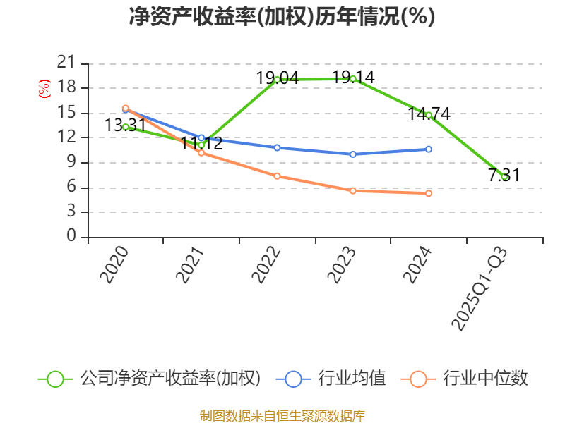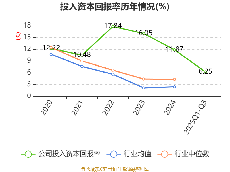 盈利能力方面, 2025年前三季度公司加权平均净资产收益率为7.31%,同比下降5.15个百分点。公司2025年前三季度投入资本回报率为6.25%,较上年同期下降3.72个百分点。