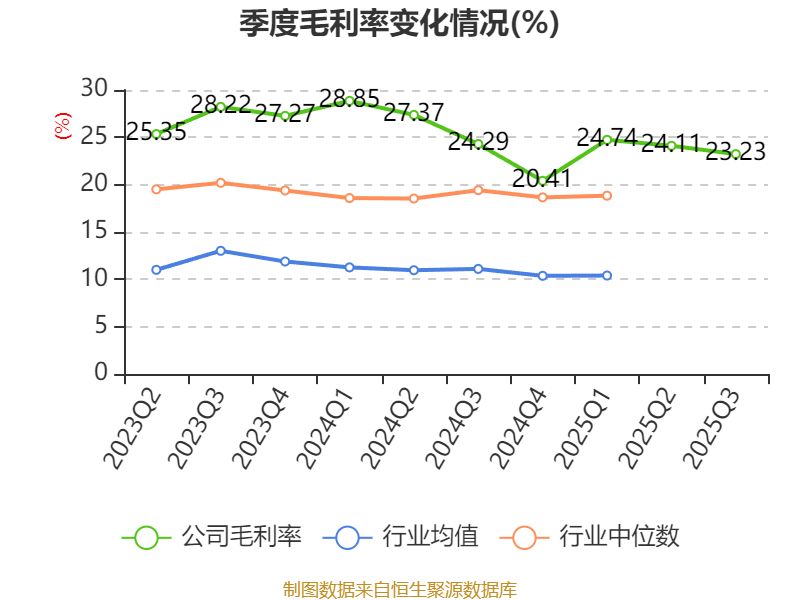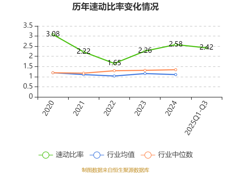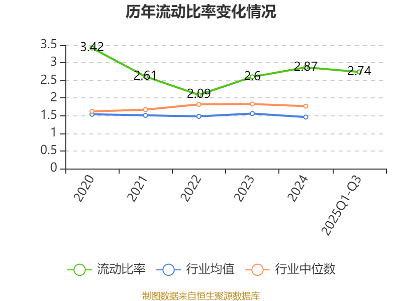 2025年前三季度,公司流动比率为2.74,速动比率为2.42。