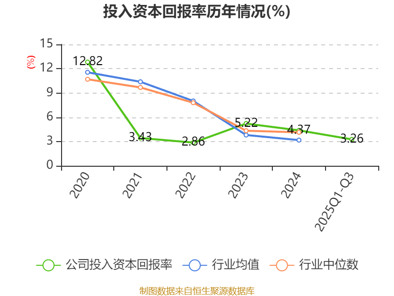 盈利能力方面, 2025年前三季度公司加权平均净资产收益率为4.39%,同比下降0.75个百分点。公司2025年前三季度投入资本回报率为3.26%,较上年同期下降0.93个百分点。