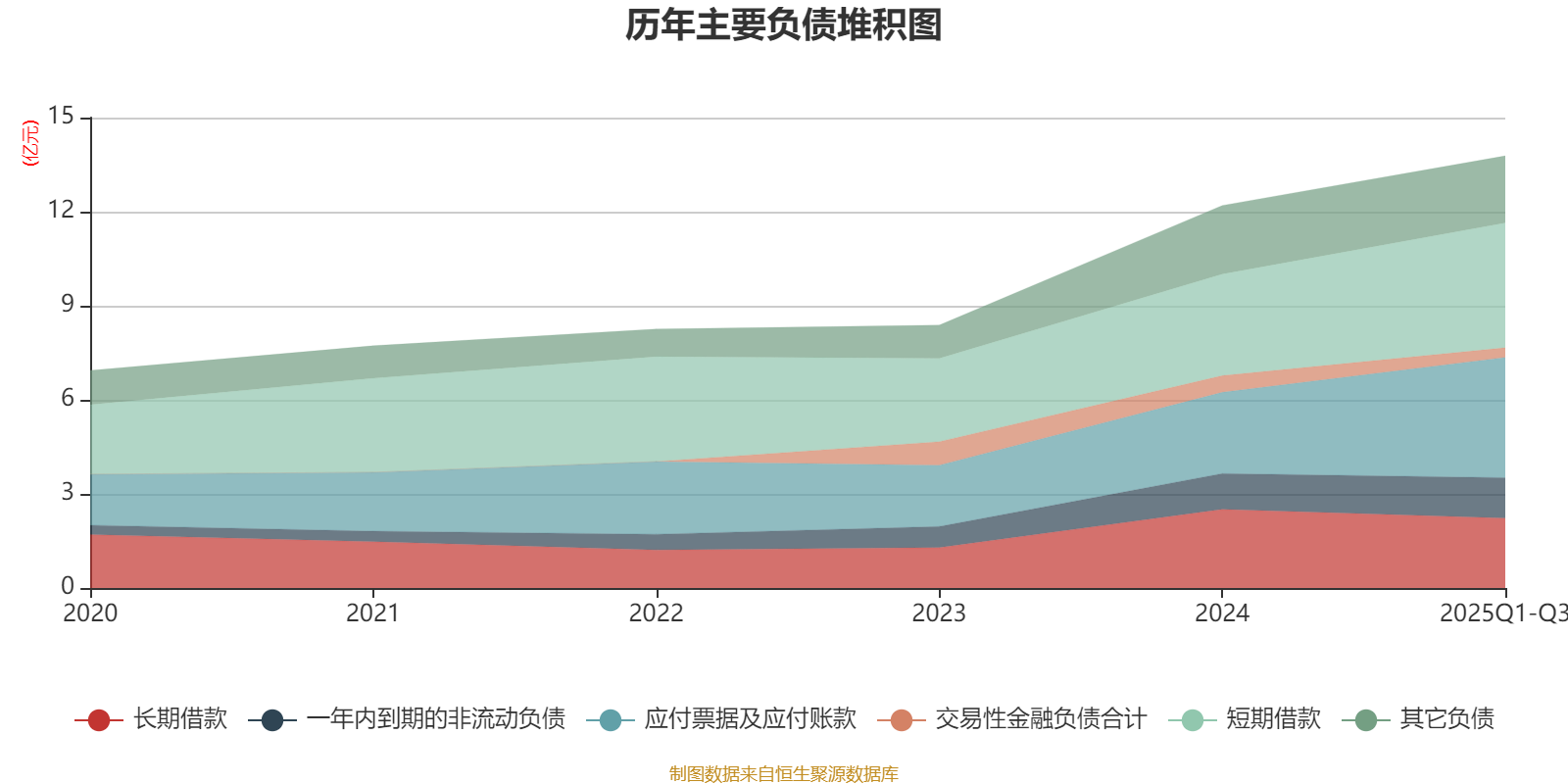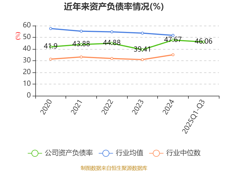 负债重大变化方面,截至2025年三季度末,公司应付票据及应付账款较上年末增加48.15%,占公司总资产比重上升2.71个百分点;长期借款较上年末减少11.18%,占公司总资产比重下降2.35个百分点;长期应付款合计较上年末减少63.96%,占公司总资产比重下降1.43个百分点;交易性金融负债合计较上年末减少42.28%,占公司总资产比重下降1.05个百分点。