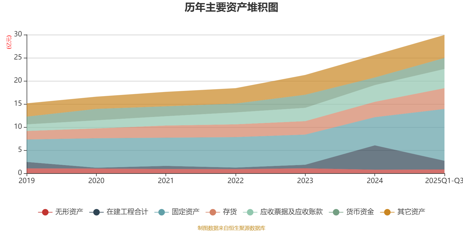 资产重大变化方面,截至2025年三季度末,公司在建工程合计较上年末减少64.34%,占公司总资产比重下降14.3个百分点;固定资产较上年末增加83.97%,占公司总资产比重上升13.67个百分点;存货较上年末增加34.96%,占公司总资产比重上升2.01个百分点;货币资金较上年末增加46.47%,占公司总资产比重上升1.62个百分点。