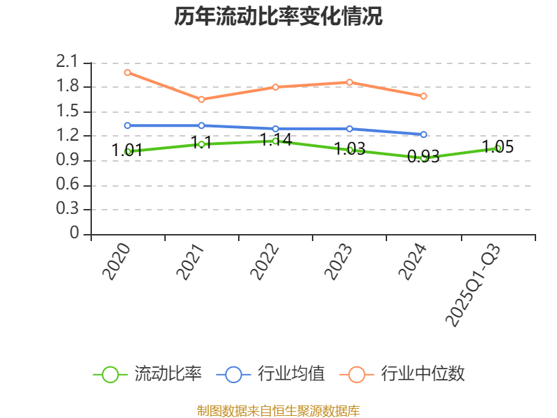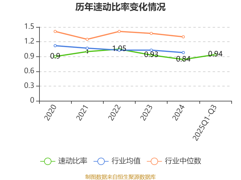 2025年前三季度,公司流动比率为1.05,速动比率为0.94。
