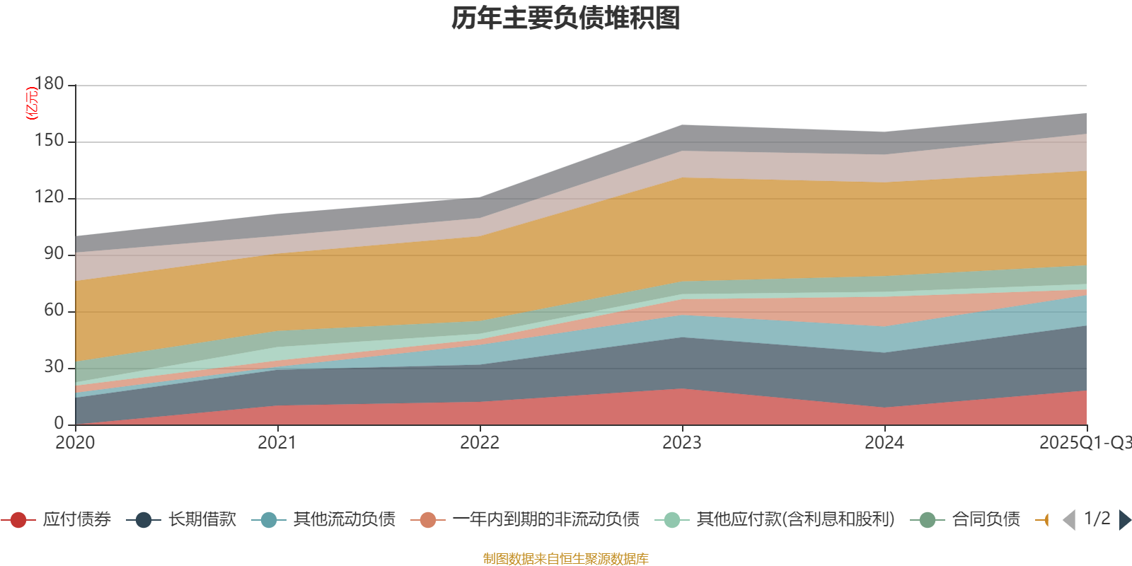 负债重大变化方面,截至2025年三季度末,公司一年内到期的非流动负债较上年末减少81.2%,占公司总资产比重下降4.87个百分点;应付债券较上年末增加100%,占公司总资产比重上升3.21个百分点;长期借款较上年末增加18.31%,占公司总资产比重上升1.62个百分点;短期借款较上年末增加32.89%,占公司总资产比重上升1.61个百分点。