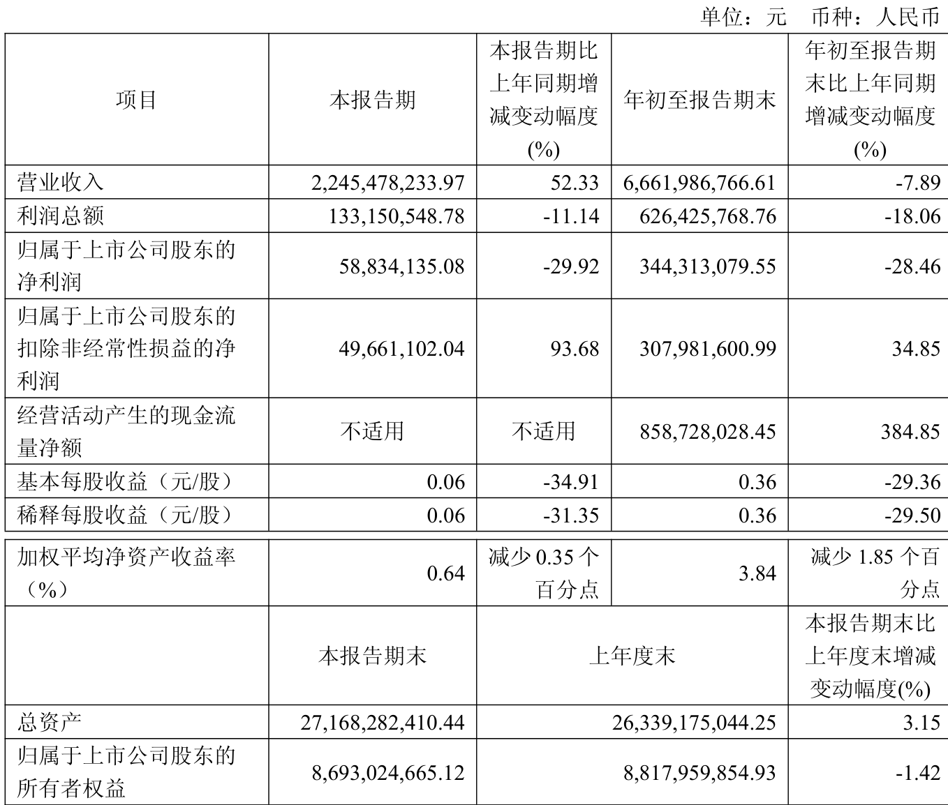 2025年前三季度,公司经营活动现金流净额为8.59亿元,同比增长384.85%;筹资活动现金流净额1.92亿元,同比减少2.26亿元;投资活动现金流净额-5.29亿元,上年同期为-7.27亿元。
