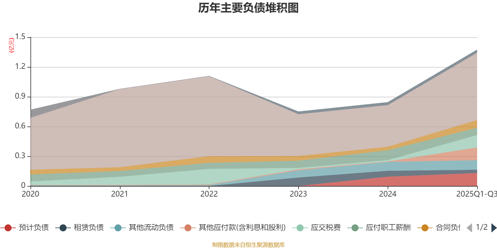 负债重大变化方面,截至2025年三季度末,公司应付票据及应付账款较上年末增加61.28%,占公司总资产比重上升1.38个百分点;其他应付款(含利息和股利)较上年末增加2341.13%,占公司总资产比重上升0.73个百分点;应交税费较上年末增加915.38%,占公司总资产比重上升0.66个百分点;合同负债较上年末增加123.57%,占公司总资产比重上升0.24个百分点。