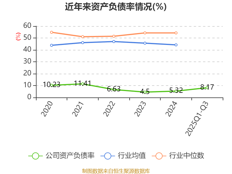 2025年前三季度,公司流动比率为11.87,速动比率为11.01。