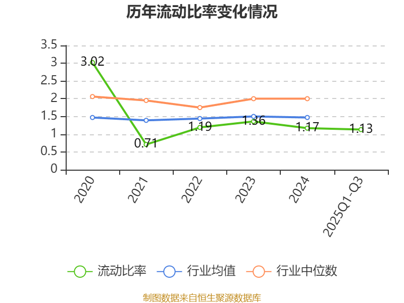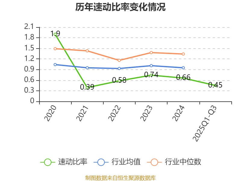 2025年前三季度,公司流动比率为1.13,速动比率为0.45。