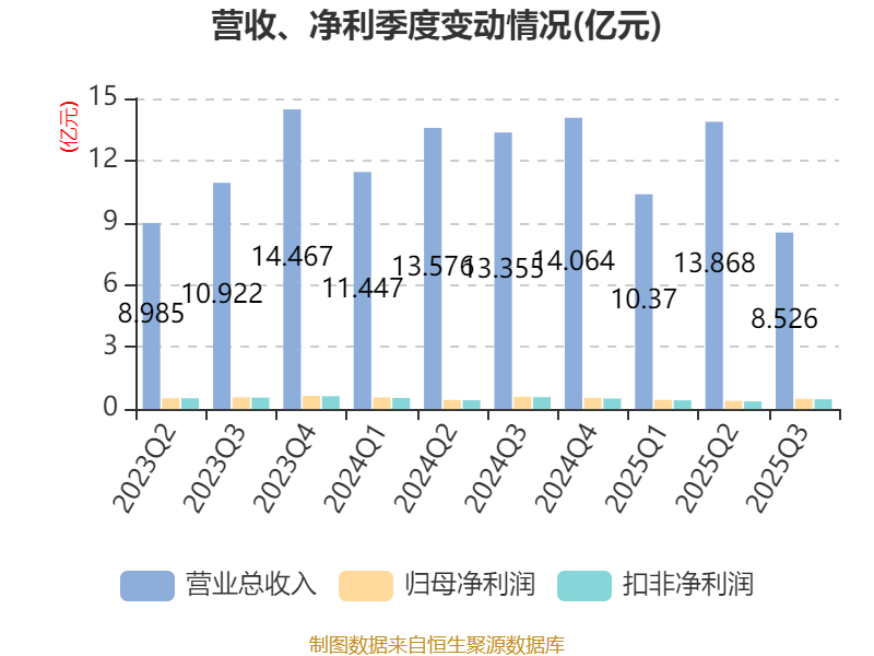 2025年前三季度,公司流动比率为2.01,速动比率为1.97。