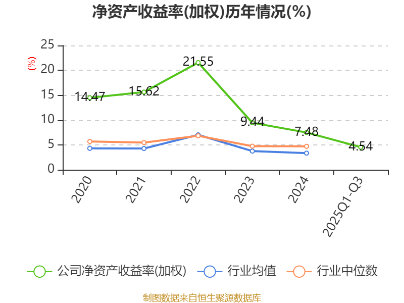盈利能力方面, 2025年前三季度公司加权平均净资产收益率为4.54%,同比下降1.08个百分点。公司2025年前三季度投入资本回报率为4.37%,较上年同期下降0.87个百分点。