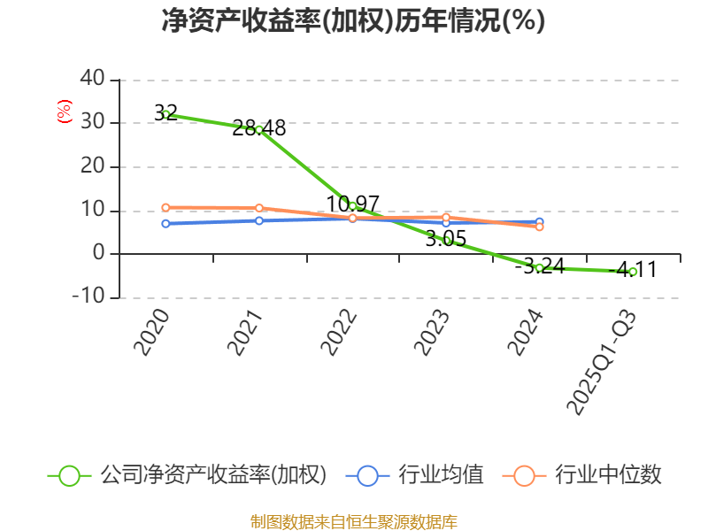 盈利能力方面, 2025年前三季度公司加权平均净资产收益率为-4.11%,同比上升0.15个百分点。公司2025年前三季度投入资本回报率为-5.1%,较上年同期下降0.19个百分点。
