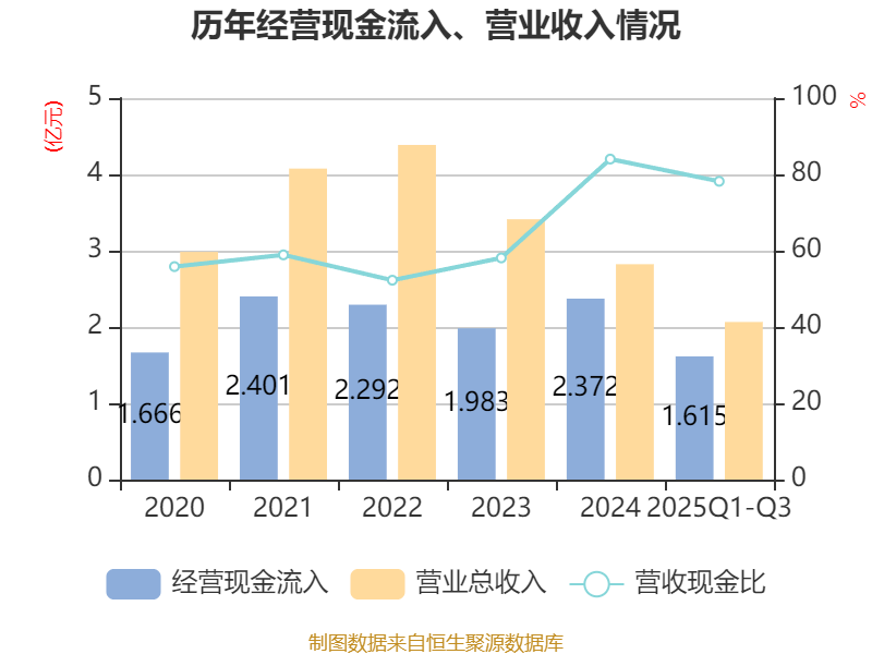 2025年前三季度,公司流动比率为3.2,速动比率为2.33。