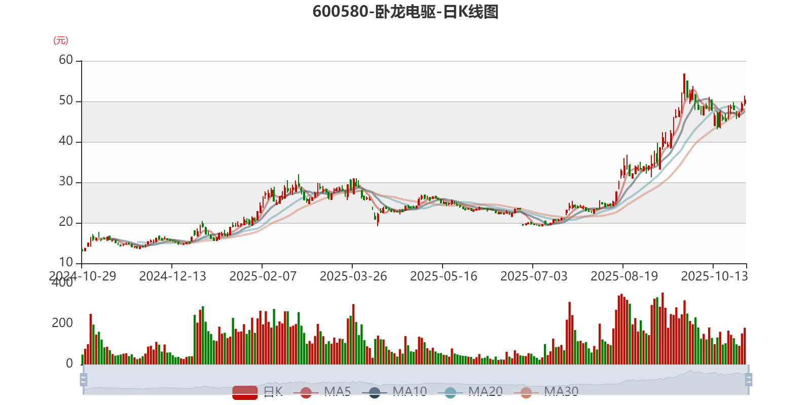 以10月28日收盘价计算,卧龙电驱目前市盈率(TTM)约为80.69倍,市净率(LF)约7.34倍,市销率(TTM)约4.9倍。