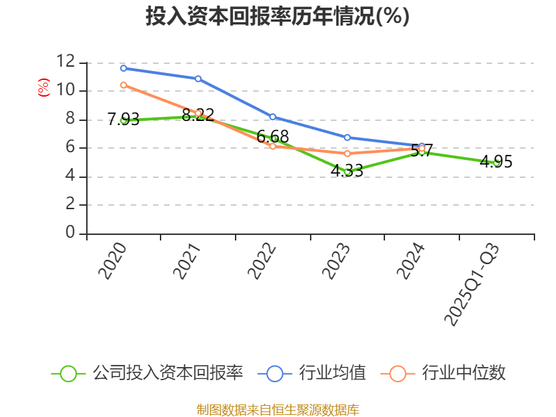 盈利能力方面, 2025年前三季度公司加权平均净资产收益率为7.87%,同比上升1.28个百分点。公司2025年前三季度投入资本回报率为4.95%,较上年同期上升0.39个百分点。