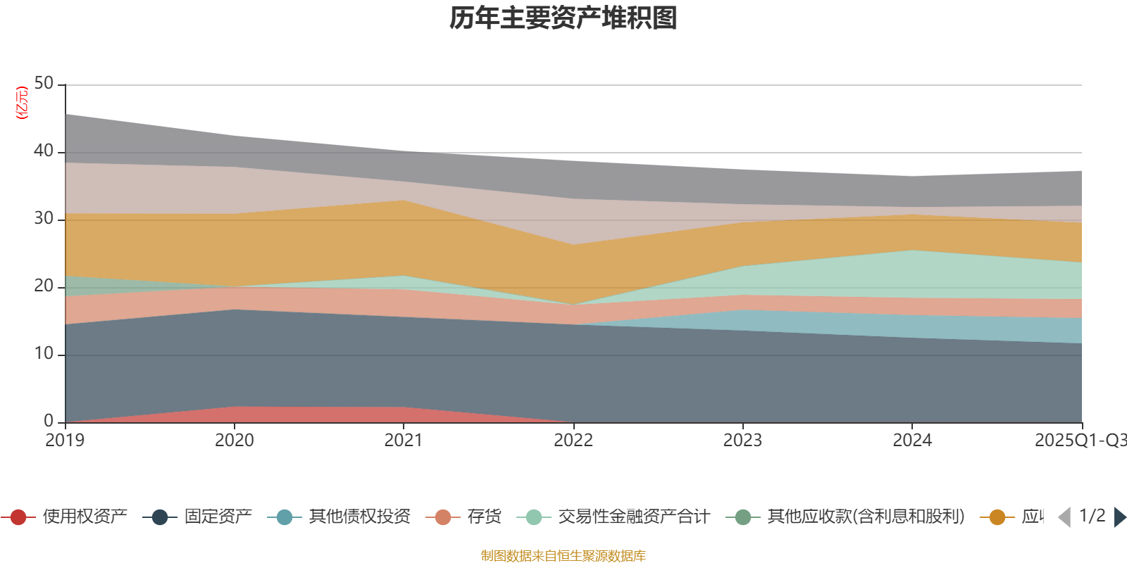 资产重大变化方面,截至2025年三季度末,公司交易性金融资产合计较上年末减少23.3%,占公司总资产比重下降4.83个百分点;货币资金较上年末增加131.57%,占公司总资产比重上升3.77个百分点;固定资产较上年末减少6.49%,占公司总资产比重下降2.89个百分点;应收款项融资较上年末增加58.71%,占公司总资产比重上升1.36个百分点。