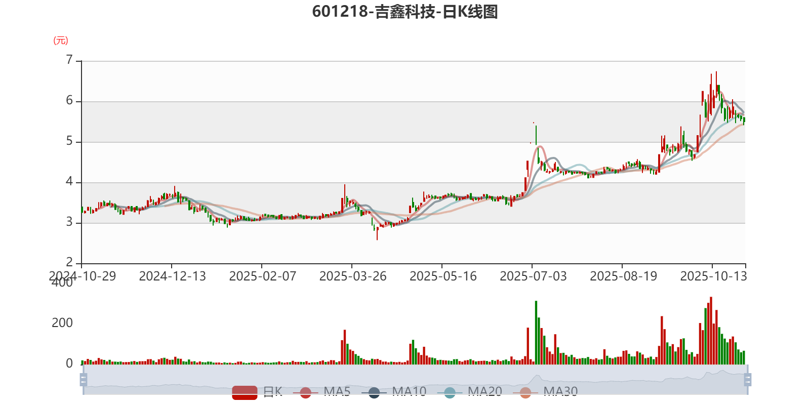 以10月28日收盘价计算,吉鑫科技目前市盈率(TTM)约为49.26倍,市净率(LF)约1.8倍,市销率(TTM)约3.84倍。