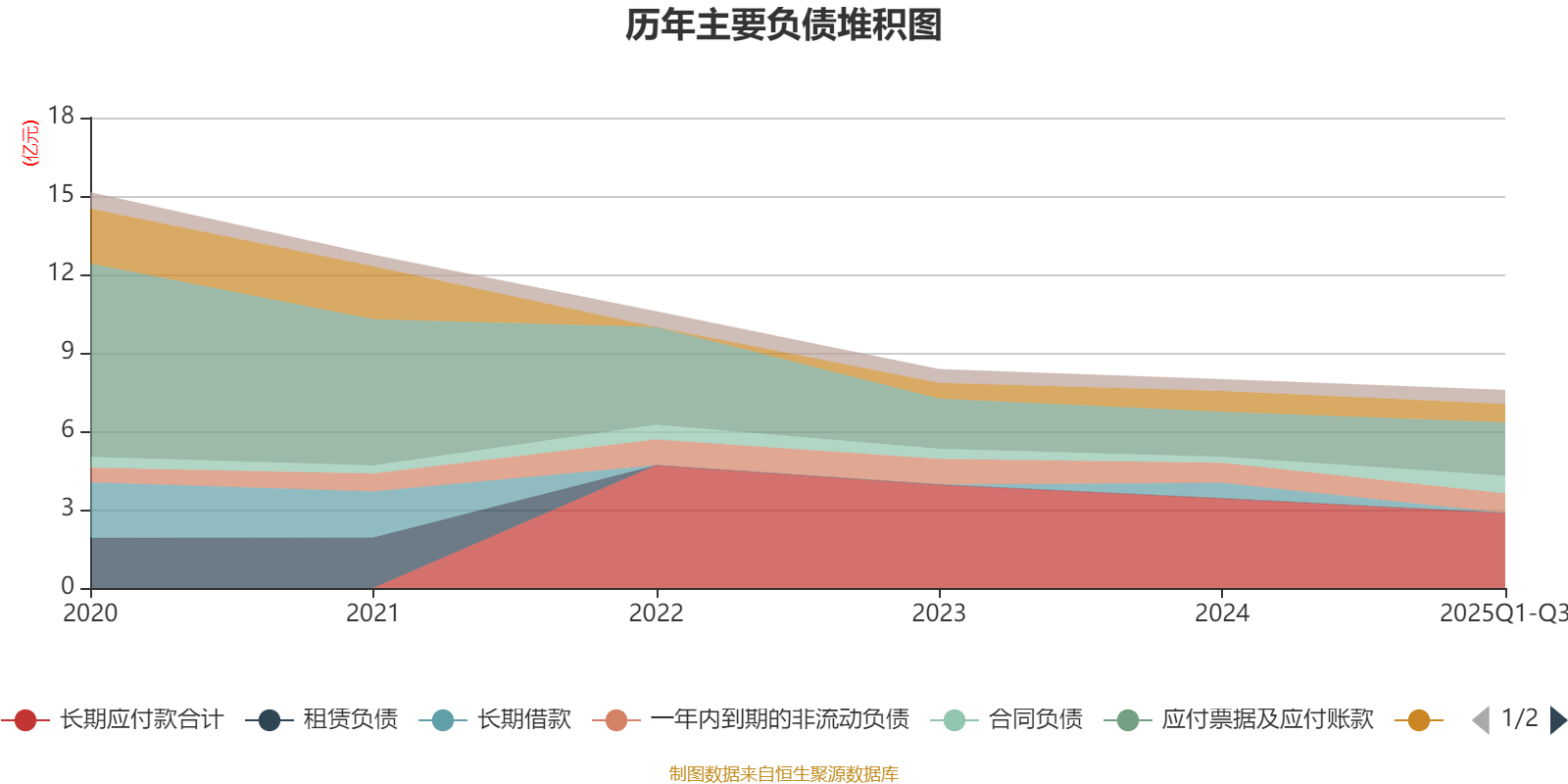 负债重大变化方面,截至2025年三季度末,公司长期应付款合计较上年末减少16.28%,占公司总资产比重下降1.69个百分点;长期借款较上年末减少100%,占公司总资产比重下降1.63个百分点;合同负债较上年末增加191.23%,占公司总资产比重上升1.18个百分点;应付票据及应付账款较上年末增加19.02%,占公司总资产比重上升0.78个百分点。