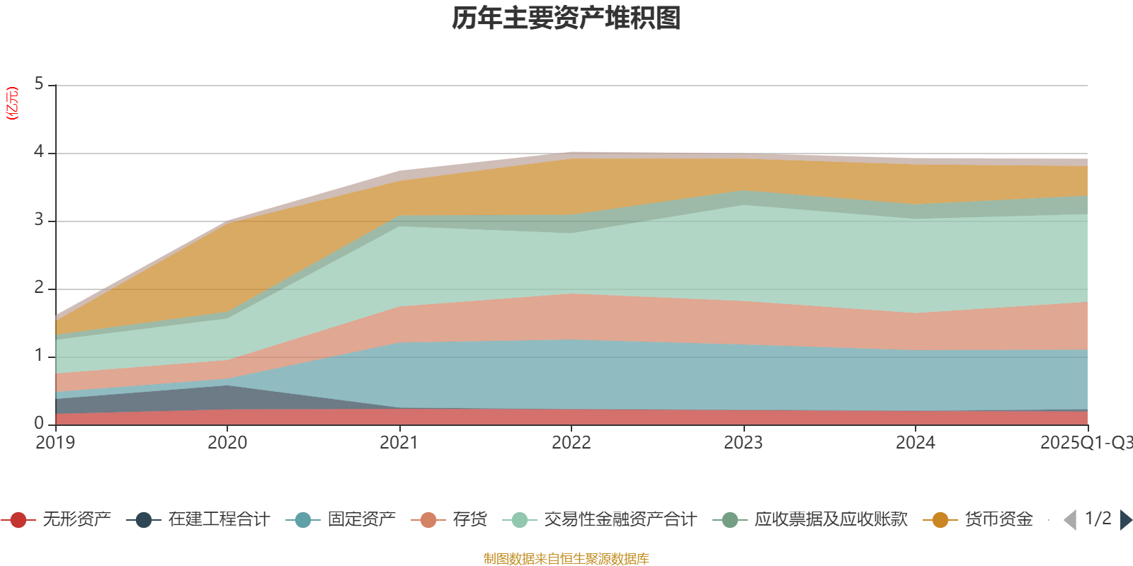 资产重大变化方面,截至2025年三季度末,公司存货较上年末增加28.09%,占公司总资产比重上升3.96个百分点;货币资金较上年末减少25.65%,占公司总资产比重下降3.82个百分点;交易性金融资产合计较上年末减少6.69%,占公司总资产比重下降2.31个百分点;应收票据及应收账款较上年末增加27.15%,占公司总资产比重上升1.49个百分点。