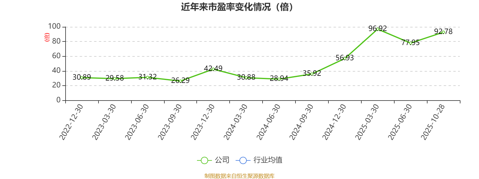 以10月28日收盘价计算,同惠电子目前市盈率(TTM)约为92.78倍,市净率(LF)约17.99倍,市销率(TTM)约28.83倍。