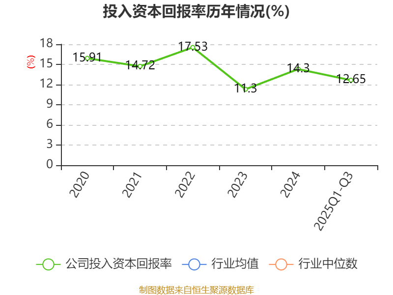 盈利能力方面, 2025年前三季度公司加权平均净资产收益率为12.32%,同比上升4.04个百分点。公司2025年前三季度投入资本回报率为12.65%,较上年同期上升4.45个百分点。
